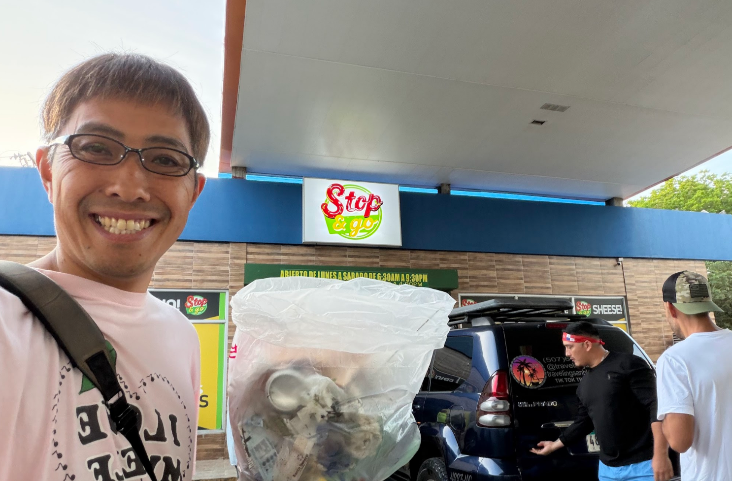 途中1時間のところで、トイレ休憩&朝食休憩♪ いつものように、サービスエリアゴミ拾いに励みます♪