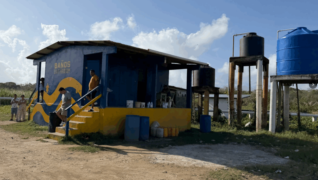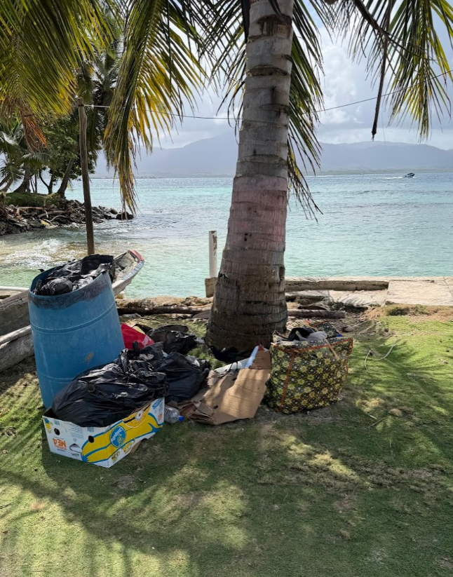 椰子の木のたもとが、ゴミ収集所。この島には焼却施設も、埋め立て地もないので、ゴミを本土に持っていくようです。翌日、ボートにゴミを乗せて、移動するのを目撃しました♪