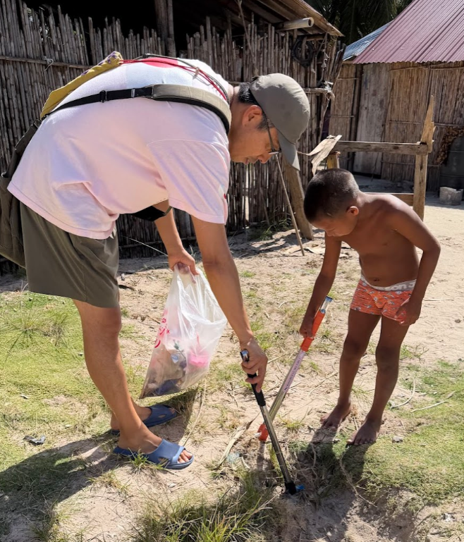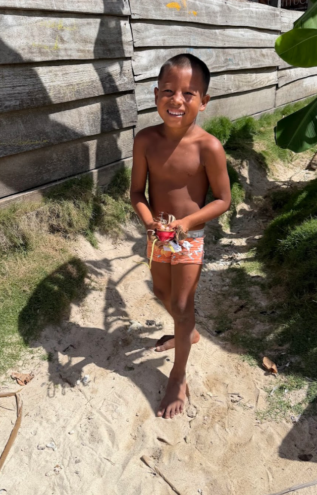 島の中をせっせとゴミ拾いをしていると、原住民の男の子が手伝いに来てくれました♪ 可愛い♪♪♪♪