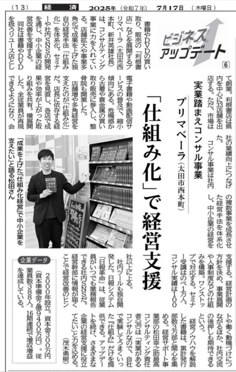 群馬県で発行部数シェアが一位の上毛新聞(じょうもうしんぶん)さんに、株式会社プリマベーラのコンサルテ…