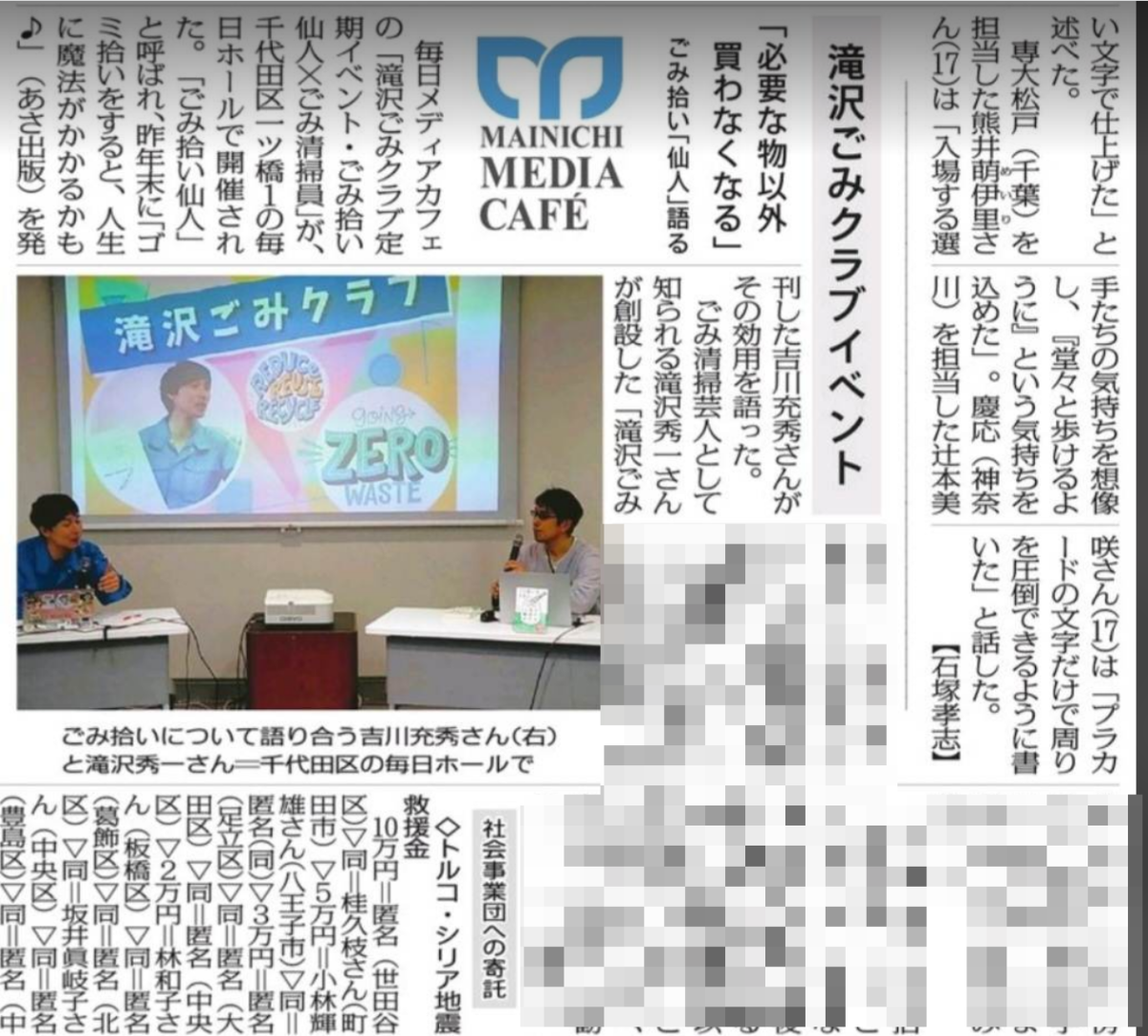 ゴミ収集芸人さんの滝沢秀一さんと、毎日メディアカフェさん主催で、「ゴミトーク」を一時間半ほど、一緒に開催してきました♪東京都千代田区…