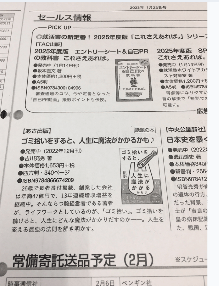 書店さん向けのセールス情報に、ゴミ拾いの著書が掲載中♪